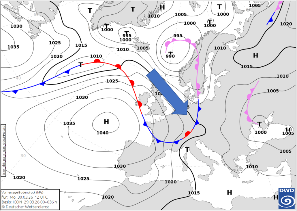 Am heutigen Montag zeigt sich bei nordwestlicher Strömung das klassische Bild von Aprilwetter, obwohl es erst Ende März ist. Aber die Sonne hat ausreichend Kraft und die Konstellation der Druckgebilde ist ideal, um zahlreiche Schauer und einzelne Gewitter über der Bundesrepublik zu induzieren. Auch am morgigen Dienstag geht dieses launische Wetter noch munter so weiter, bevor von Westen langsam eine Beruhigung und Stabilisierung der Wetterlage einsetzt, da Zwischenhocheinfluss wirksam wird.