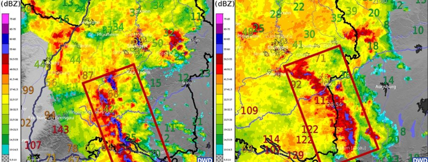 Die Vorhersage des Gewitter- und Hagelpotenzials ist das eine, sind die Gewitter einmal entstanden, folgt die Beobachtung und Bewertung von aktiven Gewitterzellen – das sogenannte Nowcasting.