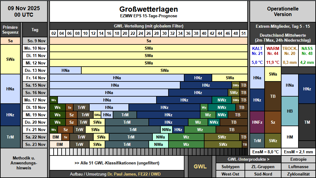 Der Blick auf das europäische Modell bzw. dessen Ensembles (EPS) weist bei der führenden Wetterlage in den kommenden Tagen kaum Veränderungen auf. Während am heutigen Sonntag die Wetterlage Süd antizyklonal das gesamt EPS dominiert, übernimmt ab Montag bis Donnerstag die Wetterlage Südwest antizyklonal. Bevor wir...