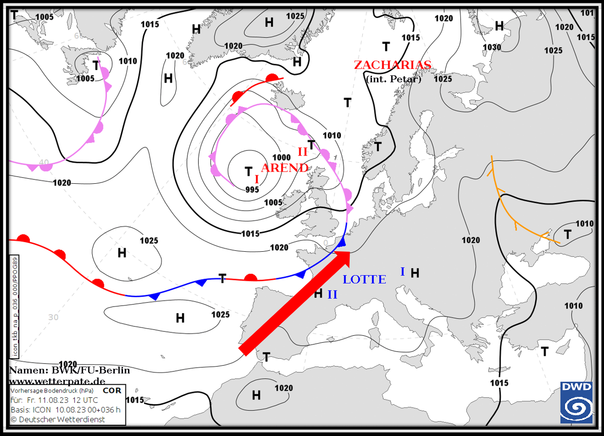 Nach einer kühlen und nassen Witterungsphase ist der Sommer zurückgekehrt. Die großräumige Wetterlage stellt sich um. Ein Tief Namens „Arend“ vor der Toren Europas (nordwestlich von Irland) steuert nun in den nächsten Tagen mit einer südwestlichen Höhenströmung warme Mittelmeerluft nach Deutschland. Die Luft ist auch sehr feucht, sodass allgemein die Wärmebelastung zunehmend steigt. Ebenfalls nimmt die Gewitterneigung deutlich zu.